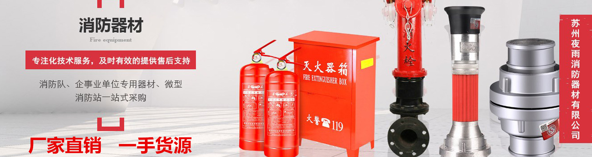 苏州夜雨消防器材有限公司是江苏省定点生产消防器材的单位:技术力量雄厚,工艺装备先进,检测器械齐全。主要生产消防器材、灭火器、灭火器箱、自由锻件、五金件加工及消防器材维修。公司生产的产品多年以来得到了上级领导及各位同仁及所有用户的好评。并被认为优良的生产企业,质量过硬企业。